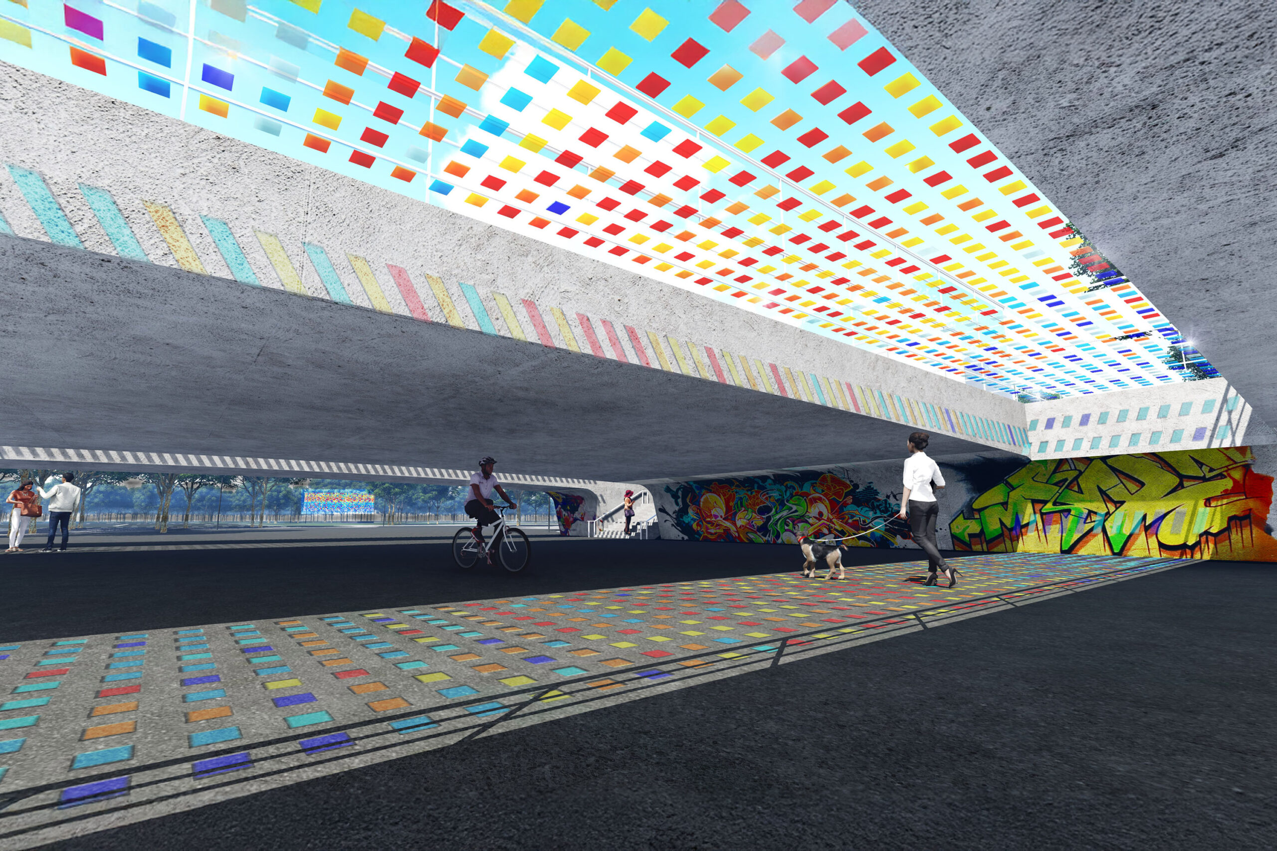 Licht richtig angewendet unterstützt Orientierung und die Wahrnehmung des Ganzen. Licht ermöglicht dabei nicht nur das physikalische Sehen und übernimmt somit die Funktion der Sicherheit. Kunstobjekte sind nicht nur applizierte Ausstattungselemente. Zusammen prägen diese beiden Elemente die besondere emotionale Identität des Ortes, schaffen einen erlebbaren Raum, funktionieren als Wegweiser, Knotenpunkte, Wiedererkennungsmerkmale und visuelle Anker.