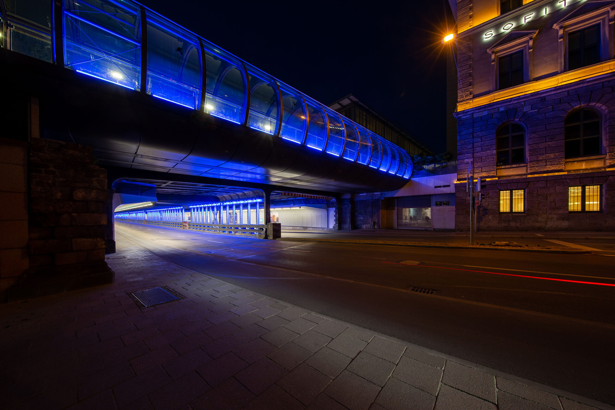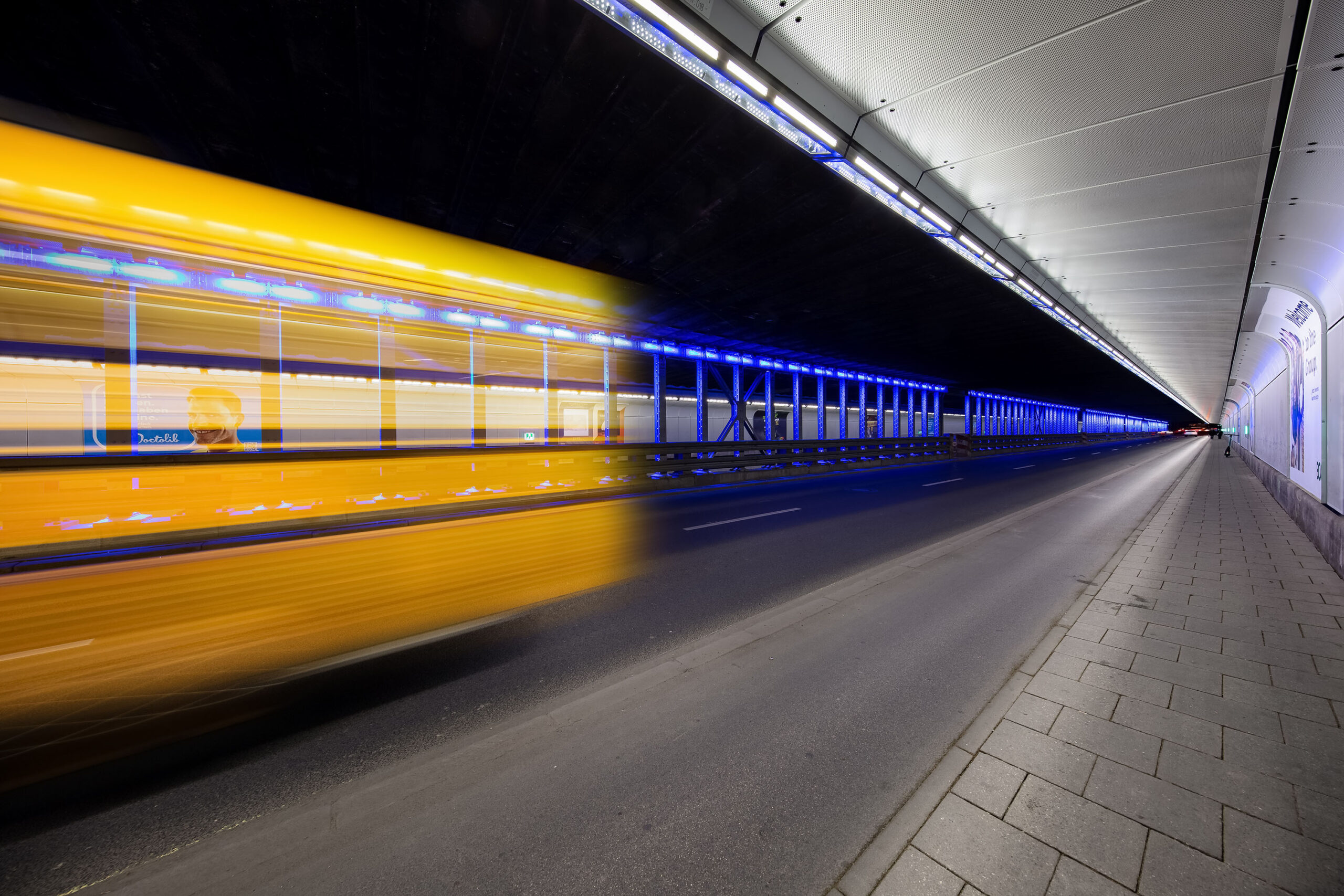2016 wurden wir schließlich von der Landeshauptstadt München beauftragt, insbesondere durch eine Effektbeleuchtung die Atmosphäre in der Unterführung zu verbessern.