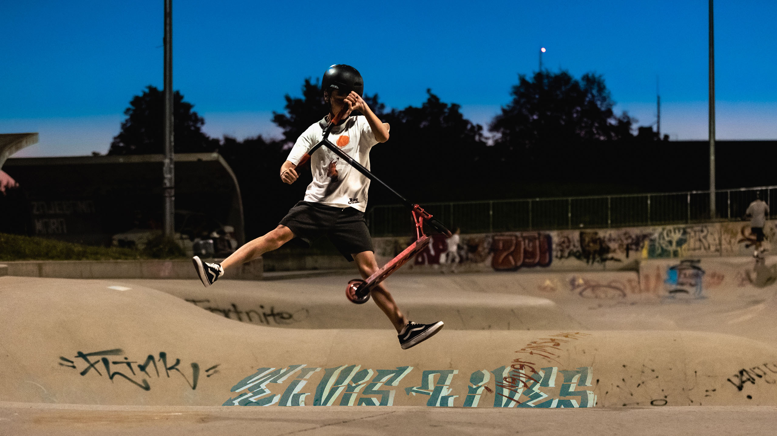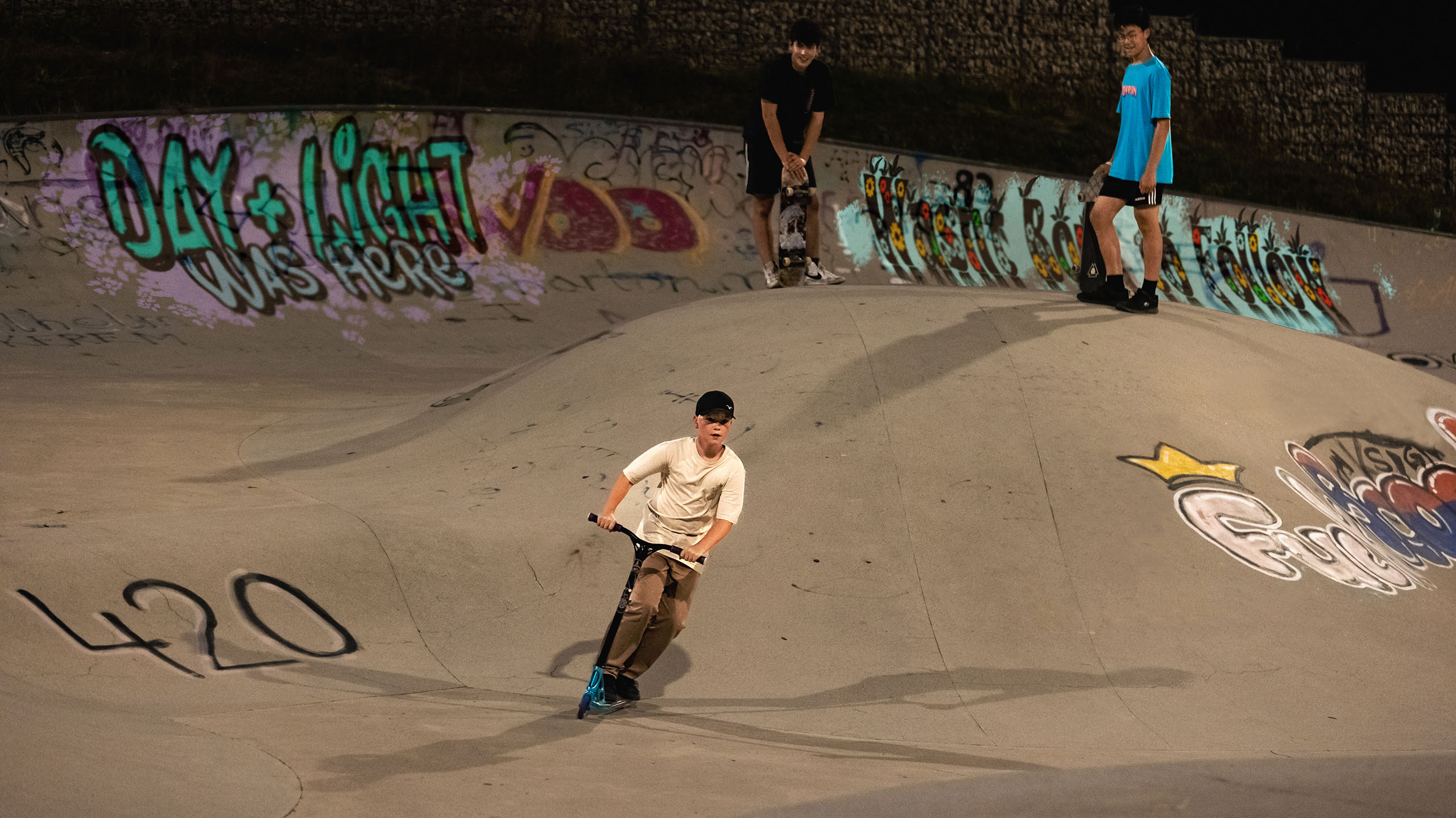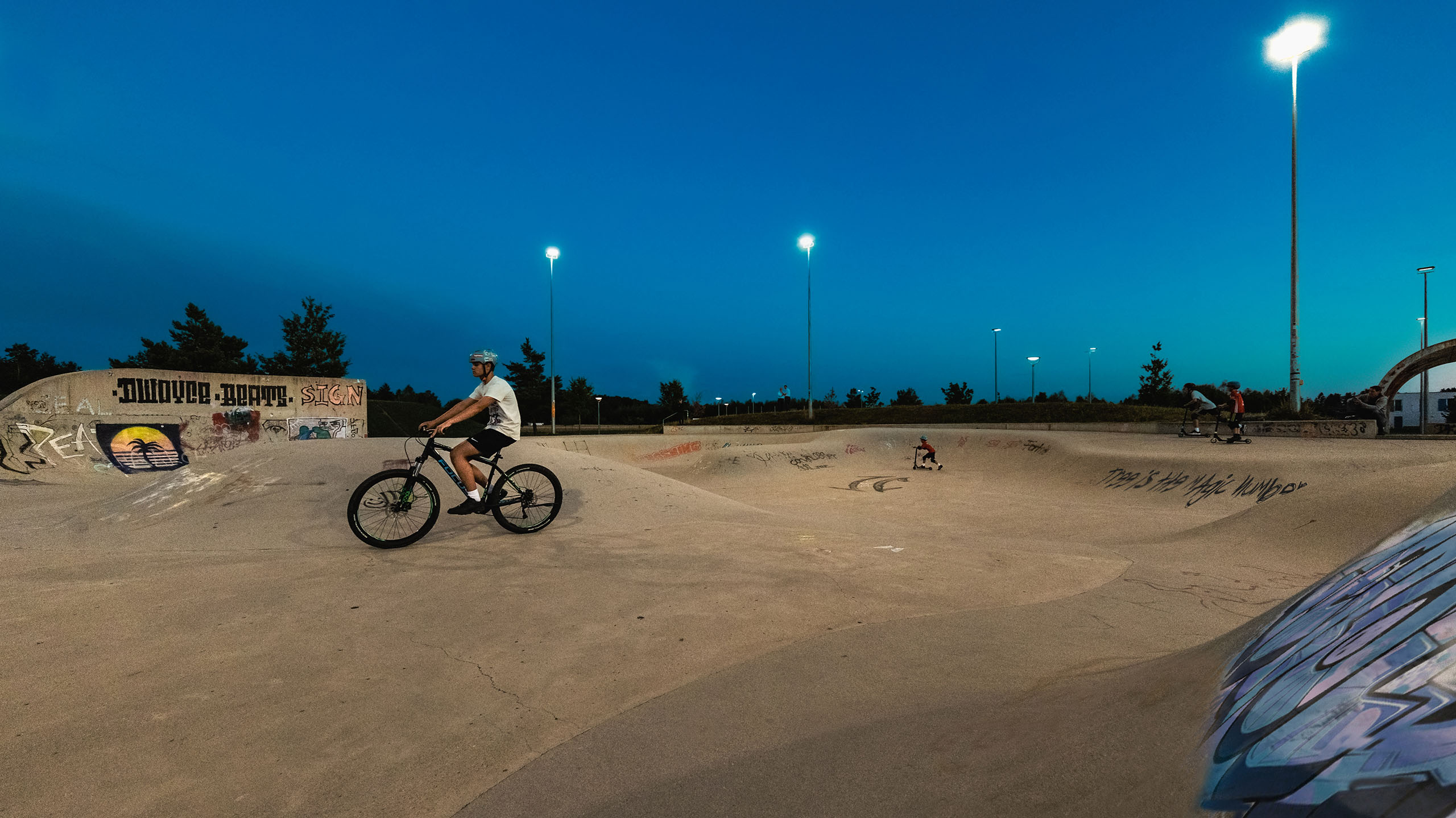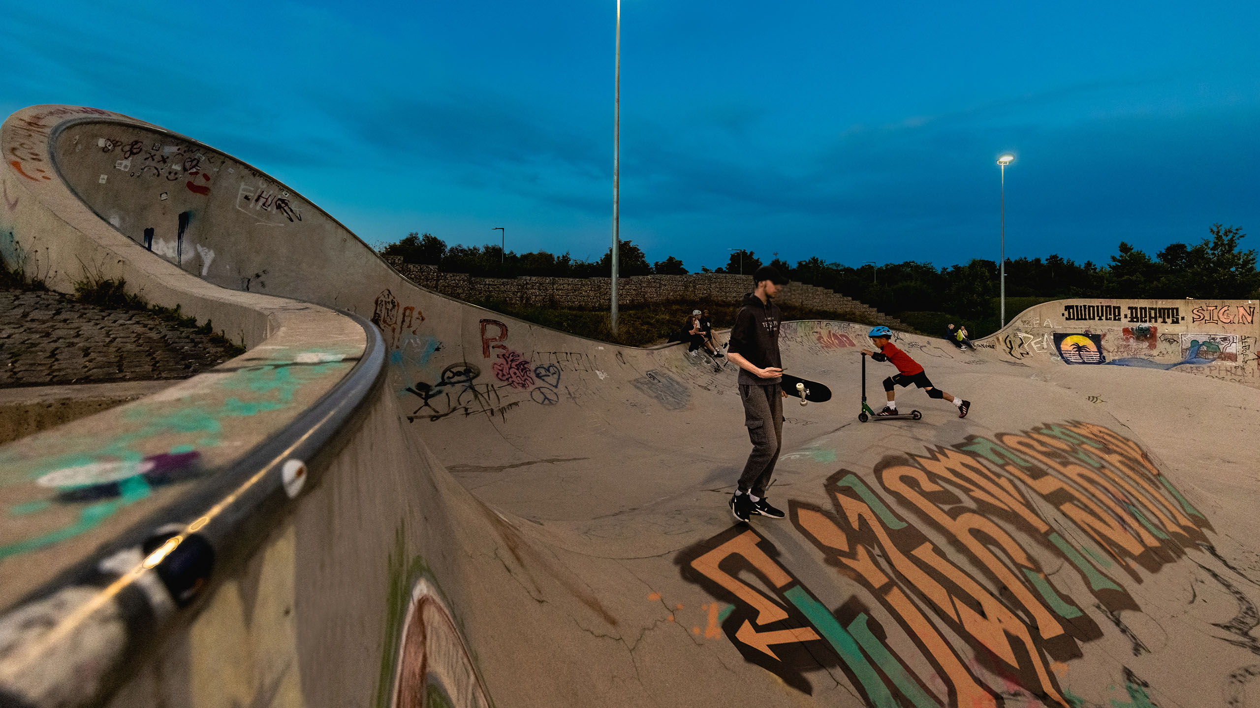 In Ramersdorf-Perlach befindet sich der weitläufige Vorstadtpark „Im Gefilde“. Inmitten der langgezogenen Wiesenlandschaft und geschwungenen Hügellandschaft liegt eine Spielanlage mit Fußball- Basketballplatz und einer großzügigen Skateanlage. Die Anlage, bereits seit 2012 in Betrieb, ist bei den München beliebter Anlaufpunkt für Sport und Spiel. Spektakuläre Sprünge mit Skates, Boards und Scootern sind hier den ganzen Tag über zu sehen, und damit es auch Abends weitergehen kann, wurde schließlich eine Lichtanlage ergänzt. Eine gleichmäßige Ausleuchtung mit wenig Schattenwurf ermöglicht gute Sicht für Sport und Stunts – gleichzeitig bleibt die Lichtimmission weitestgehend auf die Anlage begrenzt.